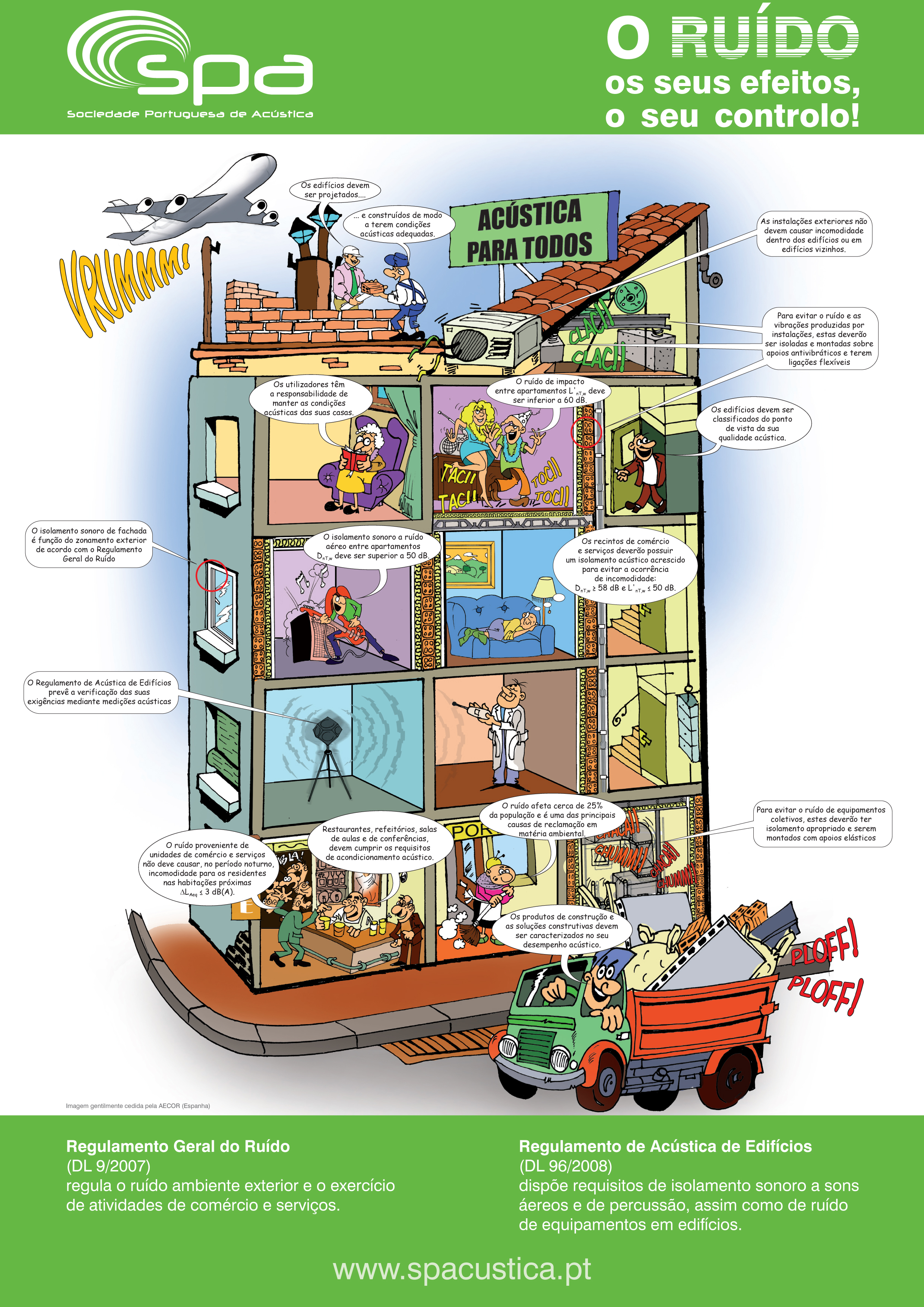 Decreto-Lei nº96/2008, de 9 de Junho (Regulamento dos Requisitos Acústicos dos Edifícios) Dispõe requisitos de isolamento sonoro a sons aéreos e de percussão, assim como de ruído de Equipamento em Edifícios.